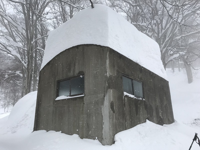 雪に埋まる避難小屋