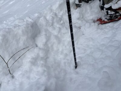 どっしりと水気を吸い込んだ重雪を四苦八苦しながらライディング。