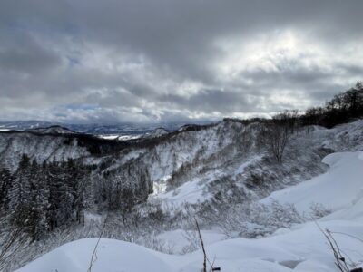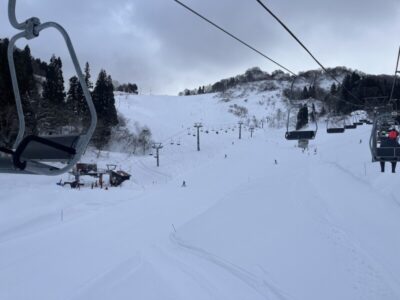 100mほど落とせば雪はやや重くはあるが止まることなくターンすれば気持ち良く曲がってくれた