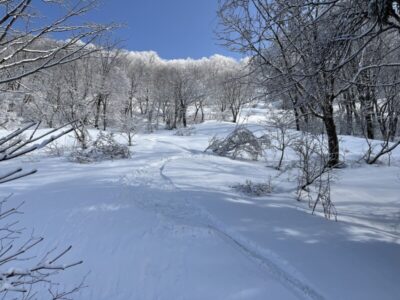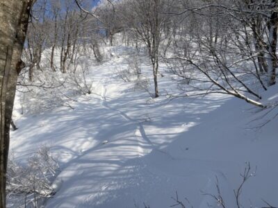 藪が埋まらない小雪の今シーズン、手軽でなかなか楽しめそうなルートを発見できた。