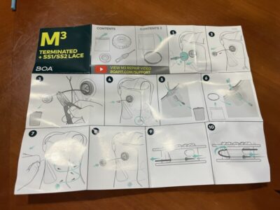 ブーツに表示されているBOAの種類やらワイヤーの長さなどを公式のHPの指示に従って記入していくと