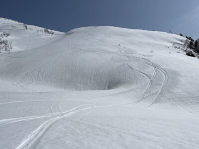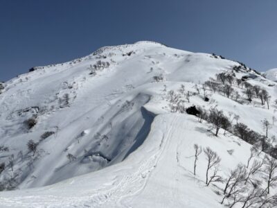 銀山平からの日向倉山はまだ開通せず行けないし、奥只見丸山スキー場の奥にある杉村岳は融雪による全層雪崩の危険が高いので却下。